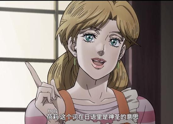 空条贺莉的英文名为“HOLY”,为圣洁之意,漫画中也提到了,他的日本别称是“圣子”,从这个名字来看,这个角色虽然并没有多少戏份,但在荒木飞吕彦的心中,她是母爱和慈祥的象征,也许这才是空条贺莉没有最终卷入残酷的替身使者争斗中的真正原因吧!