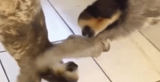 每当进入交配的季节,雌性树懒就会发出求偶的“尖叫声”,这种叫声会引来四面八方的雄性树懒,它们便会尤其聚在一起,进行一场“巴掌大赛”。雄性树懒之间会为了获得“交配权”而进行激烈的竞争,它们会采用互相扇巴掌的方式来决出胜负,胜利的一方便成为真正的“男人”。