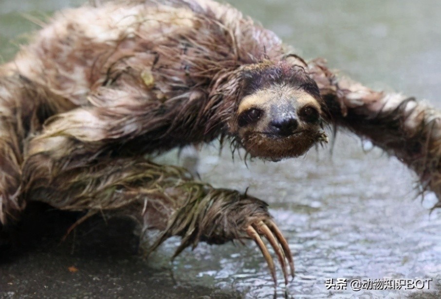 这是树懒从水中出来的样子,看上去是不是觉得有一丝丝可怕和诡异?