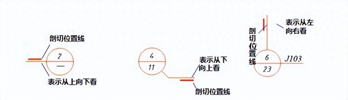 索引符号用于索引剖视详图,剖切位置绘制剖切位置线,用引出线引出索引符号,引出线一侧为投射方向。其他规定同前