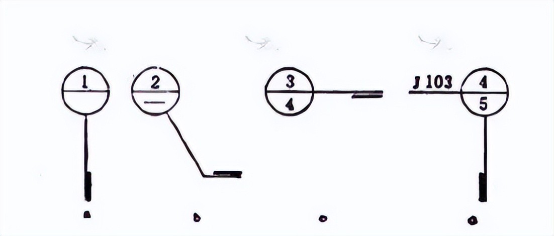 上半圆中的阿拉伯数字表示该详图的编号。下半圆的短划表示被索引的详图同在一张图纸内。而阿拉伯字表示详图所在的图纸编号。详图为标准图,应在索引符号水平直径的延长线上加注该标准图册的编号,此时,下半圆的数字表示标准图册的页码,上半圆表示该详图的编号。