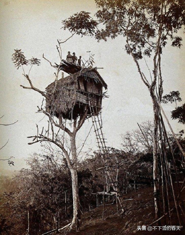 27. 巴布亚新几内亚东莫尔兹比港的一座树屋,1886 年。