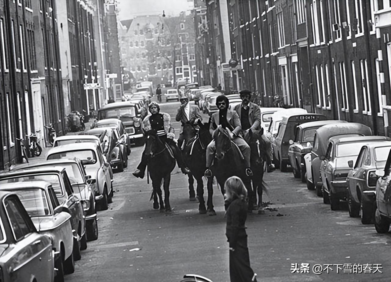 3. 1973年,当汽车因石油危机而被禁止时,每天有四名自行车手在没有汽车的阿姆斯特丹街道上骑行。