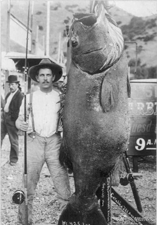 4、1903年,图中的男子捕获了世界上最大的黑鲈鱼,重达192公斤,并亲自把它带回家。