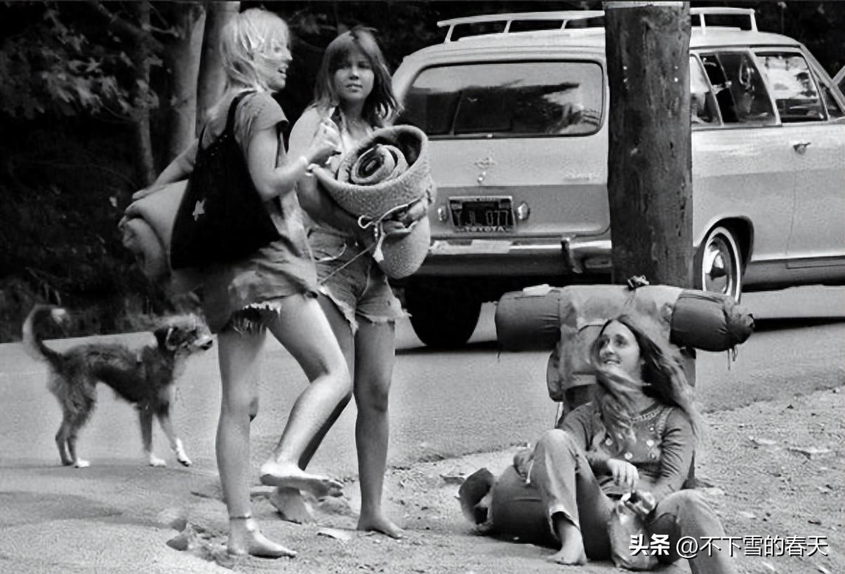 12. 1971 年,三名妇女在加利福尼亚州大苏尔的 1 号高速公路上搭便车。可以说,很多人都没有过一次自发的旅行。
