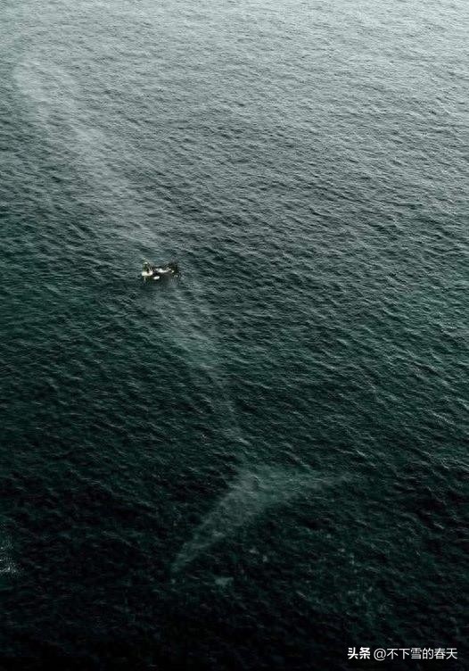 16. 在这张令人震惊的图片中,在太平洋的一艘船下可以看到一头蓝鲸的剪影。
