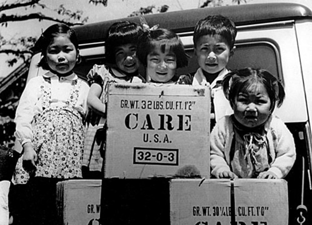 二战后捧着西方援助物质的日本儿童
