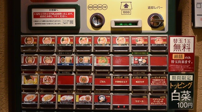 日本街上的拉面自动贩卖机