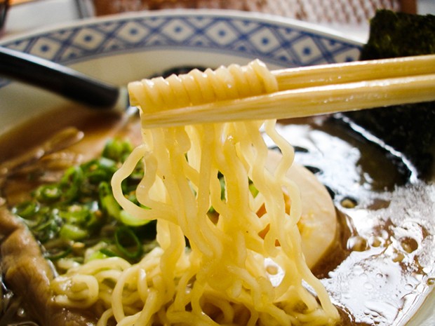 日式拉面面条粗细长短各异,多由专用拉面制作机器制作而成,以有弹性的碱水面为主。