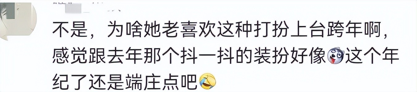 也有网友觉得她每年在跨年晚会上的装扮都是千篇一律的风格。