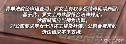 据公司人事表示,在罗女士在社交媒体上晒得哺乳视频中,罗女士并不是用母乳喂养,而是选用的奶粉喂养,所以并不能满足哺乳假的要求。
