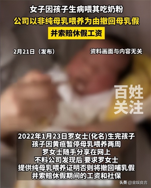 信息来源:2025-02-20 13:24·《重庆晚报》官方账号:以案说法!【#女子网上晒娃被公司取消哺乳假#】#女子网上晒娃公司撤销哺乳假被驳回#
