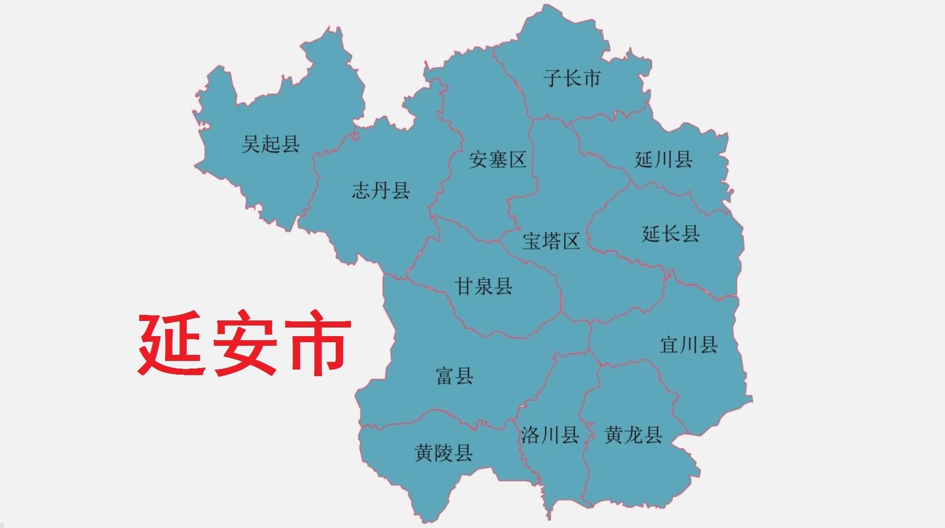 全市总面积3.7万平方公里 ,下辖2个区(宝塔区、安塞区)、10个县(延长县、 延川县、 志丹县、吴起县 、甘泉县、 富县、 洛川县 、宜川县 、黄龙县、 黄陵县)、代管1个县级市(子长市)。根据第七次人口普查数据,截至2020年11月1日零时,延安市常住人口为228.25万人。