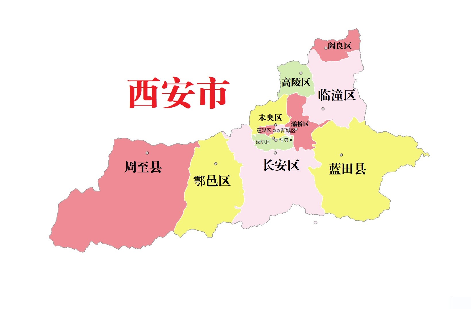 全市总面积10108平方千米 ,全市下辖11个区(新城区、碑林区、莲湖区、雁塔区、灞桥区、未央区、阎良区、临潼区、长安区、高陵区、鄠邑区)、2个县 (蓝田县、周至县)。根据第七次人口普查数据,截至2020年11月1日零时,西安市常住人口为1295.29万人。