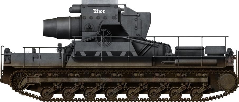 莱茵金属公司于1939年完成了这款600毫米火炮的设计——卡尔臼炮。卡尔臼炮全重达124吨,搭载戴姆勒・奔驰制MB 503 A液冷12缸发动机(580马力)或MB 507 C液冷12缸柴油发动机(590马力)提供动力。由于其自身动力有限,它只能以10公里每小时的龟速挪动,远距离机动时需要依靠火车运输。它唯一的优势是不需要再运输时拆解,抵达射击阵地后只需10分钟即可完成射击准备。