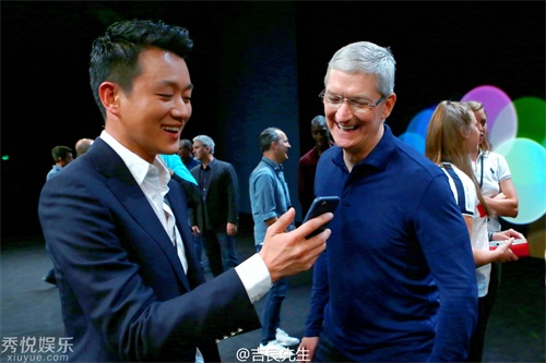 现场,佟大为体验了iPhone7的新功能,还与库克进行了交流。