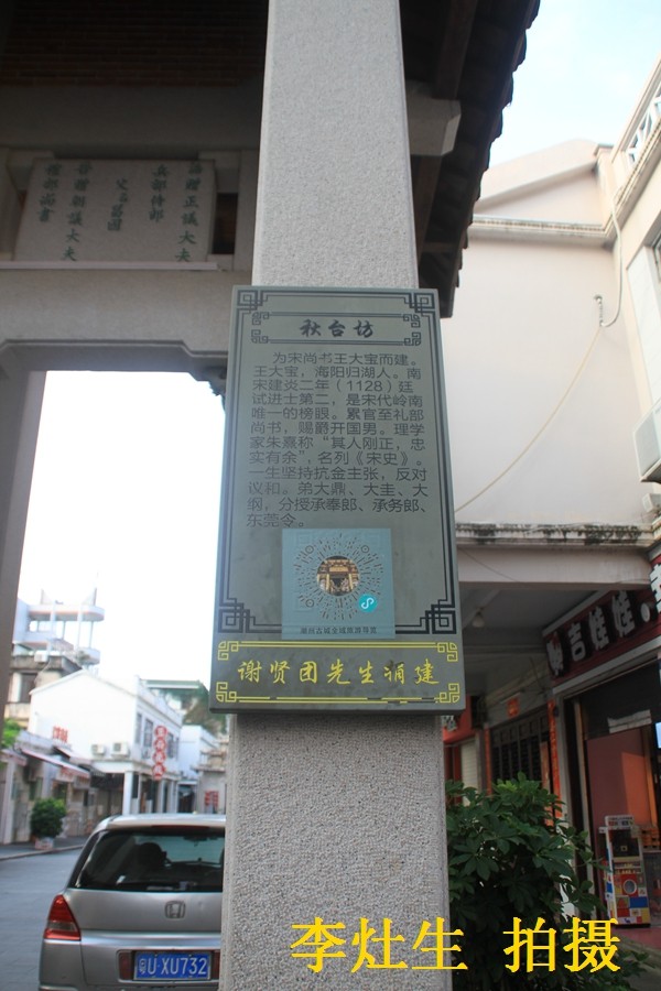 榜眼·秋台坊位于家伙巷口。为南宋建炎二年(1128)廷试第二名,礼部尚书王大宝建。秋台-王大宝曾任刑事长官,古称秋官,尚书古称台阁,故称秋台。