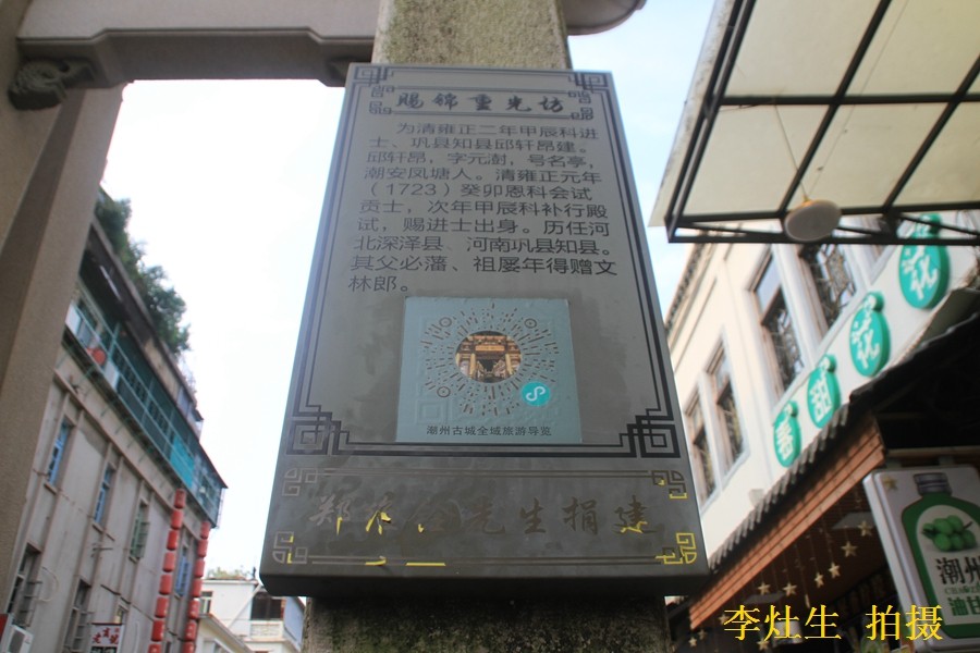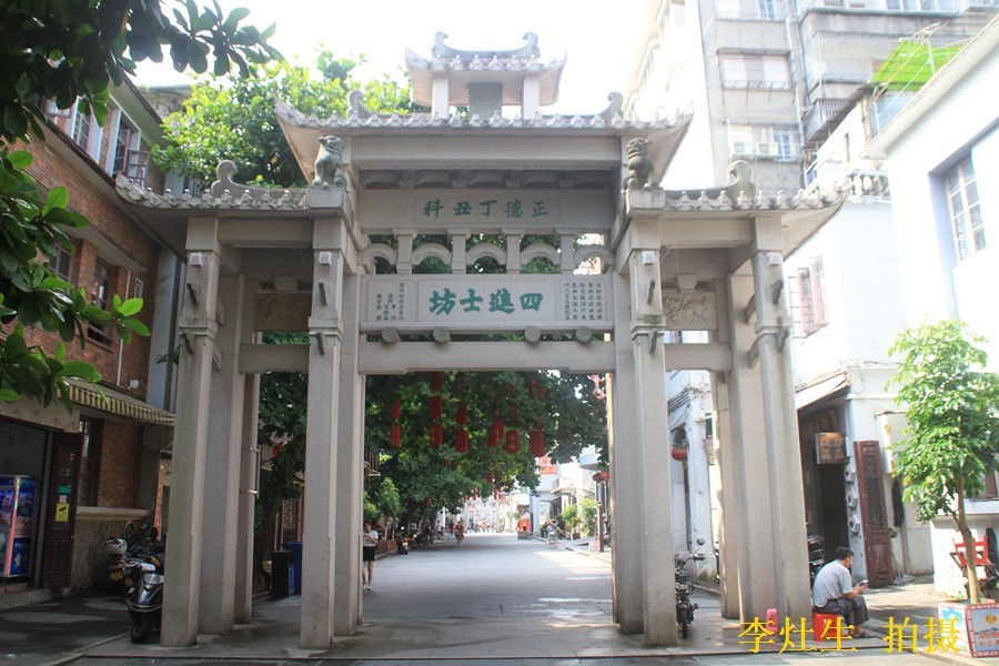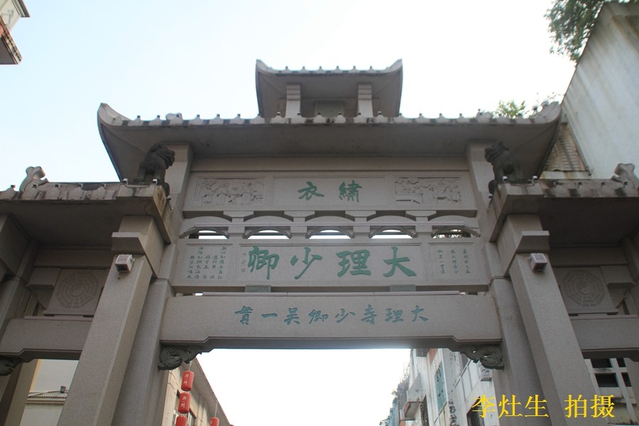 赐锦重光·貤封叠被坊位于大石狮巷口。为清雍正甲辰(1724)科进士,河南巩县知县邱轩昂建。