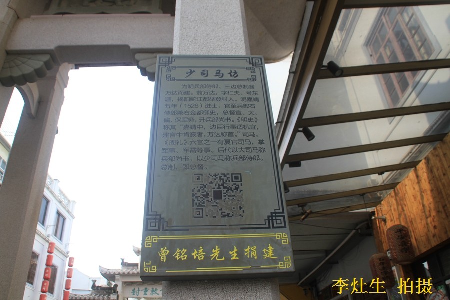 后代以"大司马"称"兵部尚书",以"少司马"称"兵部侍郎",由此知建此坊时翁万达只是 "兵训侍郎",未封兵部尚书。翁万达作为一代军事家和政治家,的确不失为潮州,乃至岭南先贤中军功最卓著,诗文也最具有特色的人物之一,他的事迹广为传播,被称为"岭南第一臣",誉为国之"干城"。随着海外潮人的足迹,他的声名也远播异邦。如泰国,他被誉为"英勇大帝",立庙祭祀竟多达100多处。