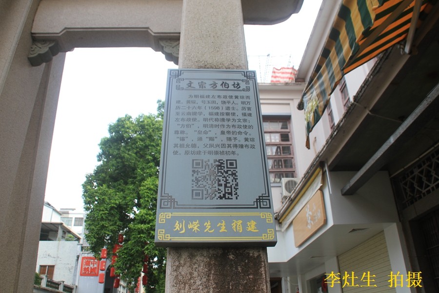 位于位于军厅巷口的文宗方伯·皇命三锡坊。文宗方伯坊是为明代福建左布政黄琮建。此坊作南北向,南额"皇命三锡"。