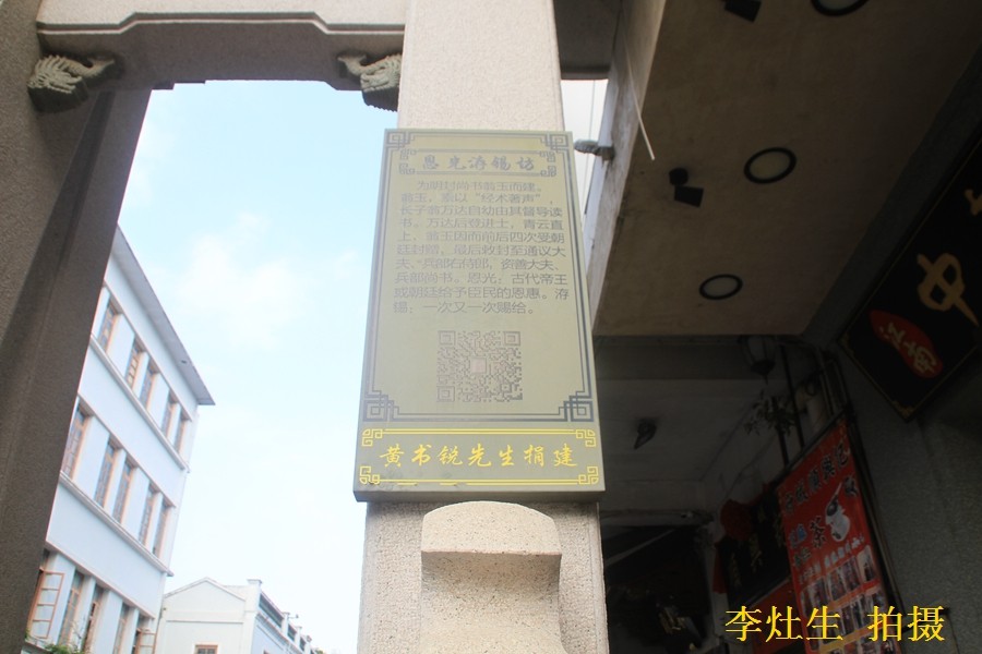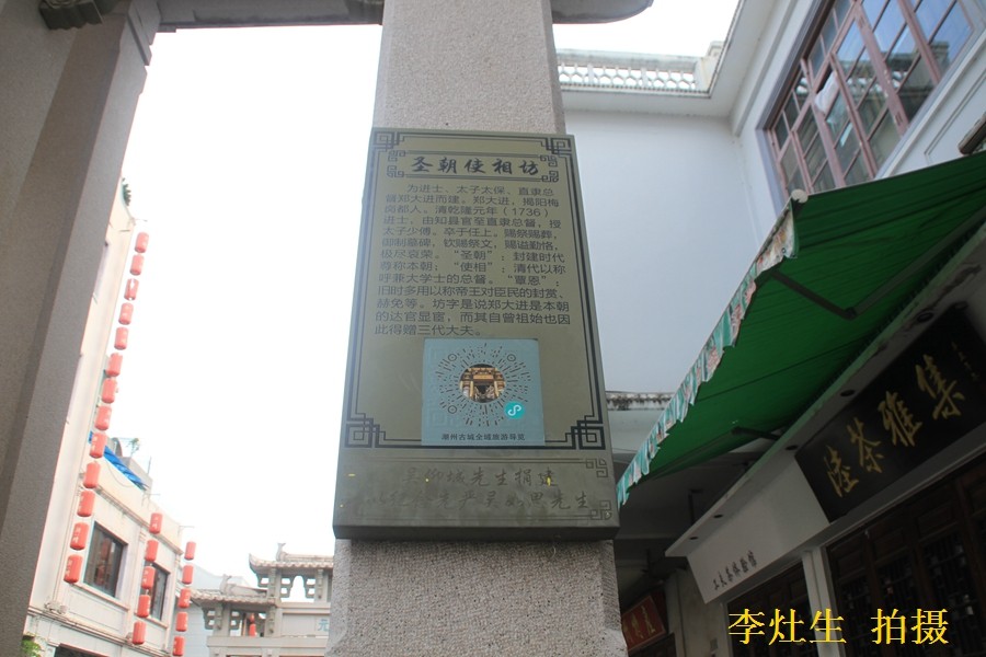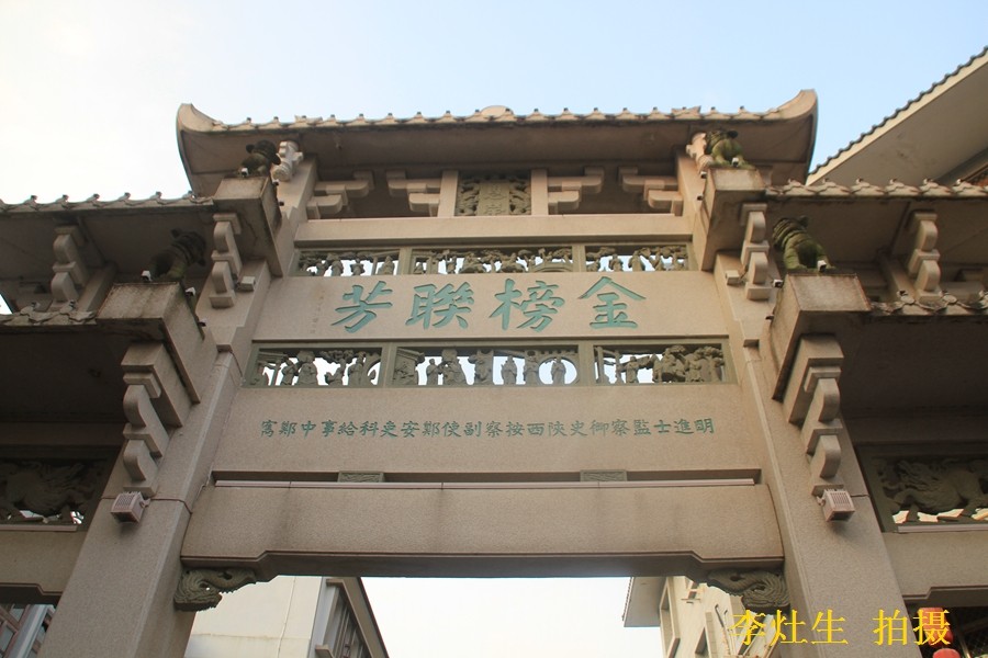 由此可见,林大钦在世人心目中的地位是何等高的圣朝使相·覃恩三锡坊,位于英聚巷口北面。"圣朝使相坊"是为"进士太子太保,直隶总督郑大进"建的。北额镌"覃恩三锡"。"圣朝",是封建时代尊称本朝的意思;"使相"是称呼兼大学士的总督。