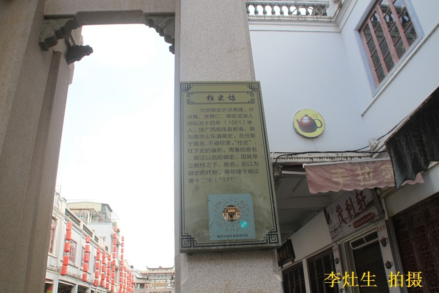 柱史坊位于柳衙巷口。柱史坊是"为明御史许洪宥建" 许洪宥,字舜仁,海阳(即潮安)人。