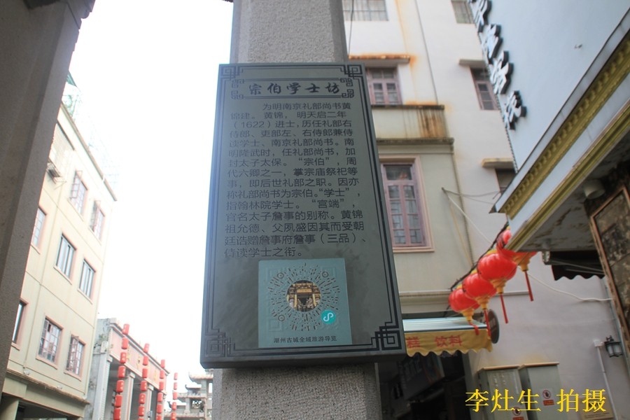 宗伯学士·三世宫端坊位于载阳巷口。宗伯学士坊是"为南京礼部尚书黄锦建"。
