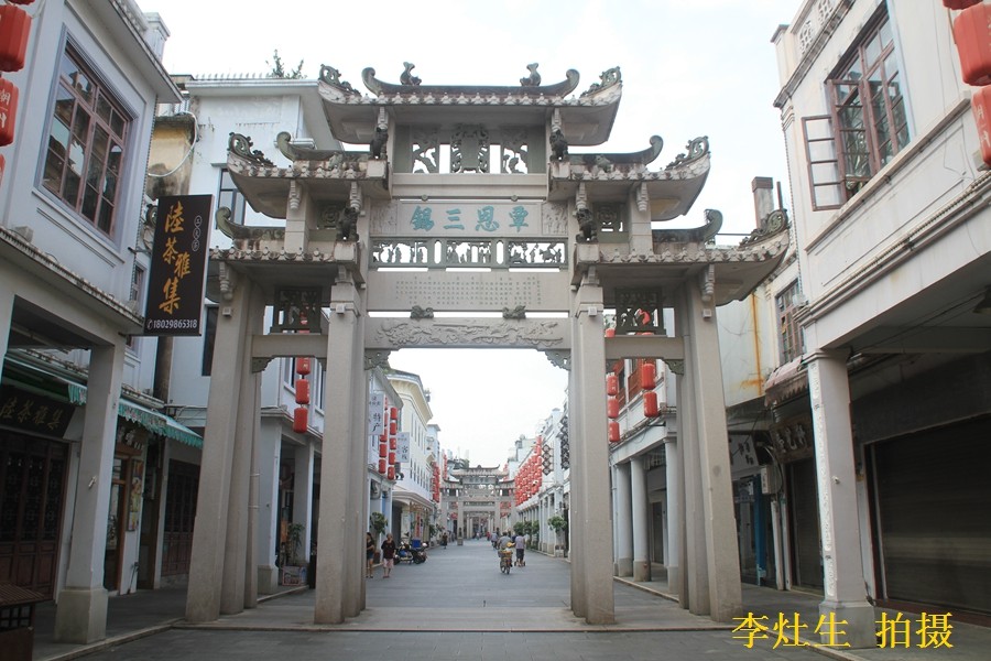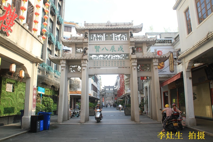 走在牌坊街上,具有南洋风格的骑楼和古朴肃穆的牌坊搭配在一起,街边小店售卖着当地美食和特产,古代、近代、现代元素交织,让人有些混乱,也有些惊喜。