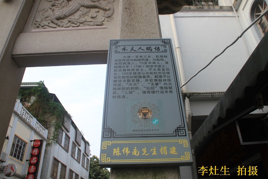 玉署仙班·木天人瑞坊位于石牌巷口。为清乾隆进士,赐翰林院侍读刘起振建。
