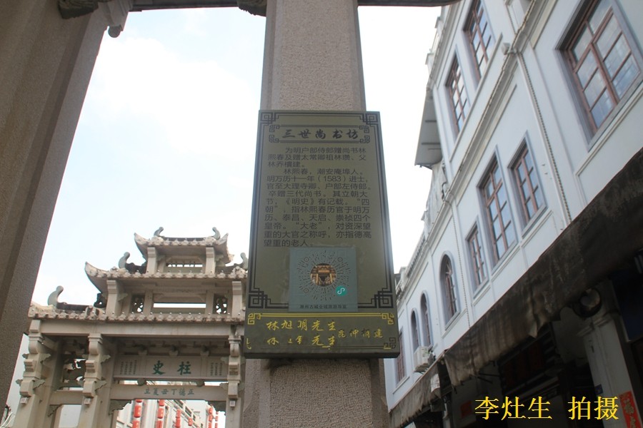 三世尚书·四朝大老坊位于分司巷口。三世尚书坊是"为赠太常卿林瓒,子林乔惯及孙户部侍郎赠尚书林熙春建"。
