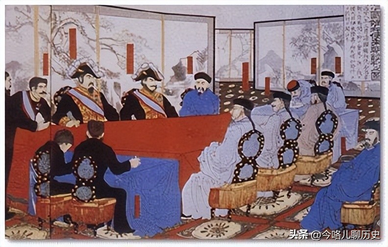 7月6日,定海沦陷。8月,英舰抵达天津大沽口外,本来主张战争的道光帝,眼见英舰迫近,开始动摇。