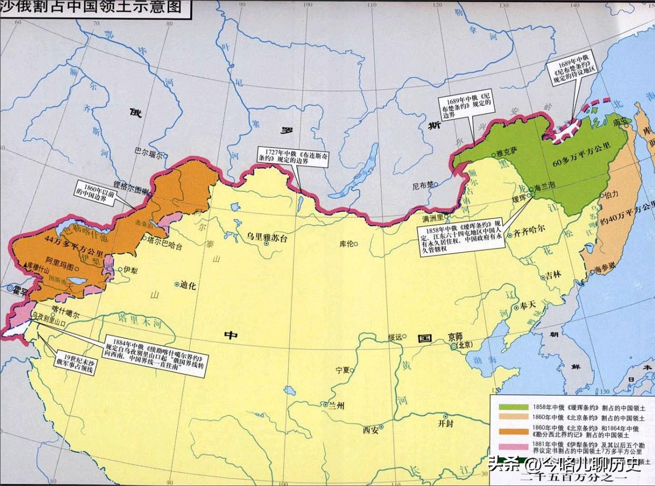 从1858年到1881年间,清朝总共被沙俄割占的国土达150多万平方公里,丧失大量领土、主权和财富,大大加深了中国半殖民地半封建社会的程度。