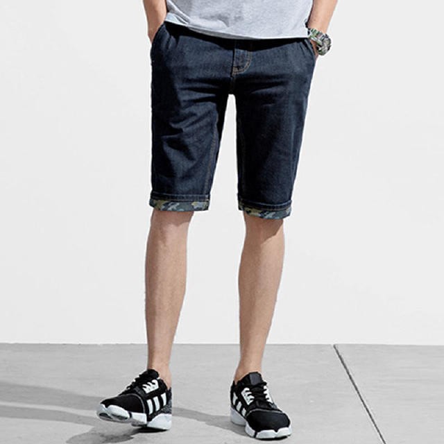 深蓝色的五分牛仔裤,穿着很修身更能凸显你大长腿的优势,裤脚处迷彩印花点缀细节,迷彩是否会让你想起奋战的士兵,那是种属于男子的硬气,也在狂野中增添一丝青春活力的感觉。