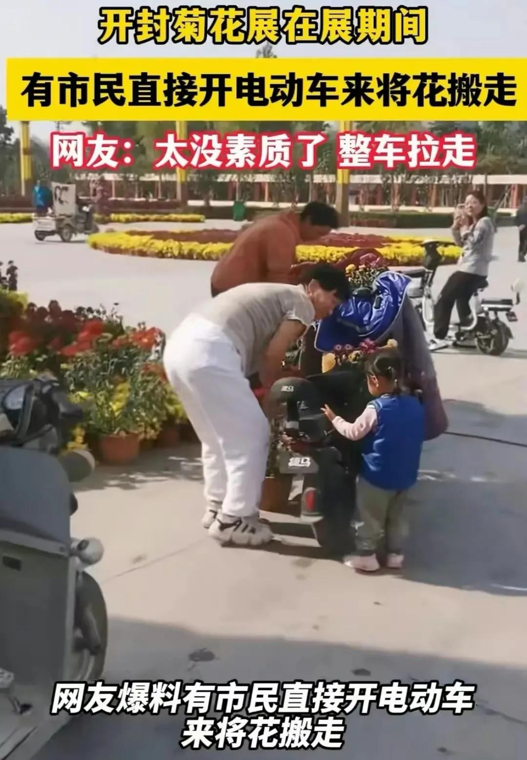 开封菊花展市民哄抢花朵,素质堪忧引发网友热议。