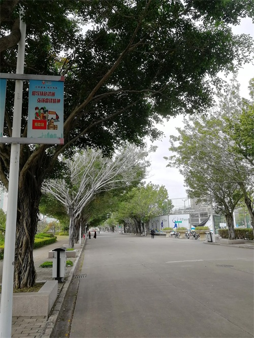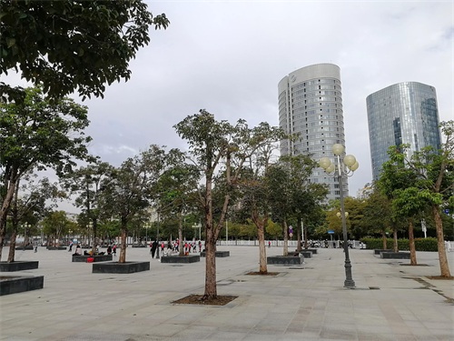 横贯广场的绿荫大道。