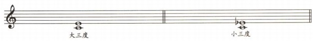 变化音程是由自然音程变化而来,但并不是所有的自然音程加以变化都是变化音程。如下图中,C到E(大三度)是自然音程,C到bE是小三度,仍是自然音程,而不是变化音程。