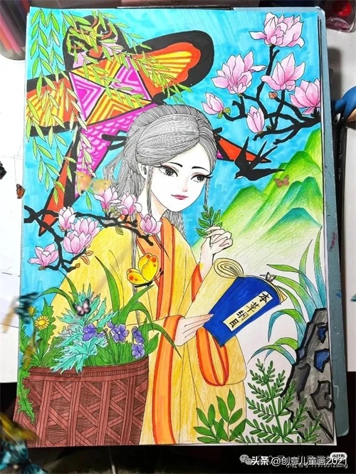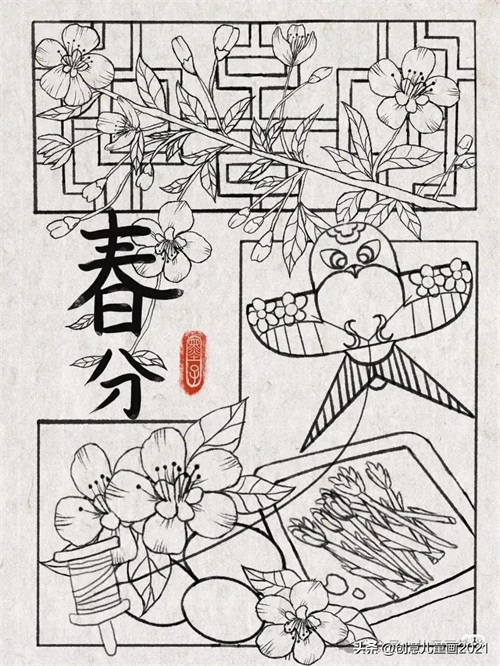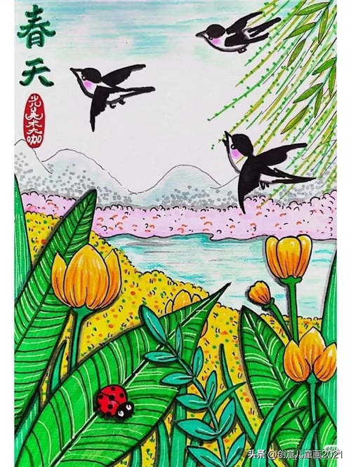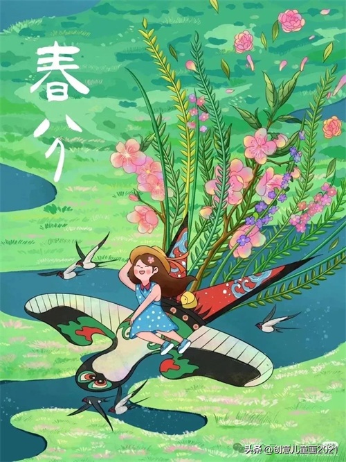 26张春天主题绘画~春天来了 踏青春分主题