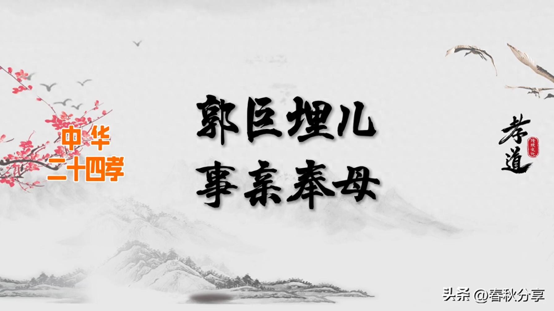 古人讲“百善孝为先”,将孝推到一个相当的高度,无论是孔子、孟子、曾子还是其他名人、思想家,无一不强调孝的重要性。今天我给大家分享一个郭巨埋儿,事亲奉母的故事。