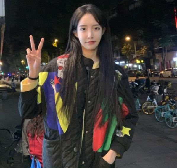 这是艾比的一张自拍,你猜照片中的艾比多少岁?杏色的内搭配上外套,艾比也是一改风格,走起了乖乖女的风格。而且外套看起来也颇为五颜六色,不规则的拼接也是看起来时尚感很强。领口设计也颇具格局,比较适合学生穿。
