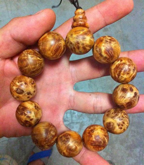 1. 此类珠子最次,常用普通香柏、 侧柏等树种冒充崖柏,价钱几十到五百不等,色泽、密度大家很容易区分!