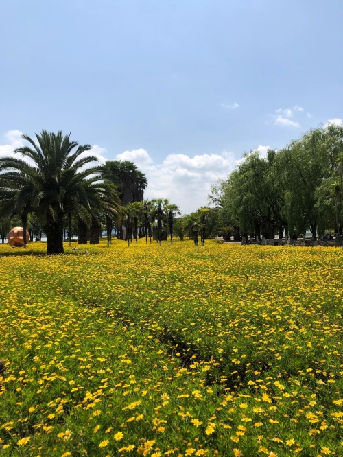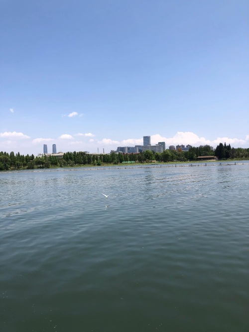 碧水蓝天,鸥翔花美。