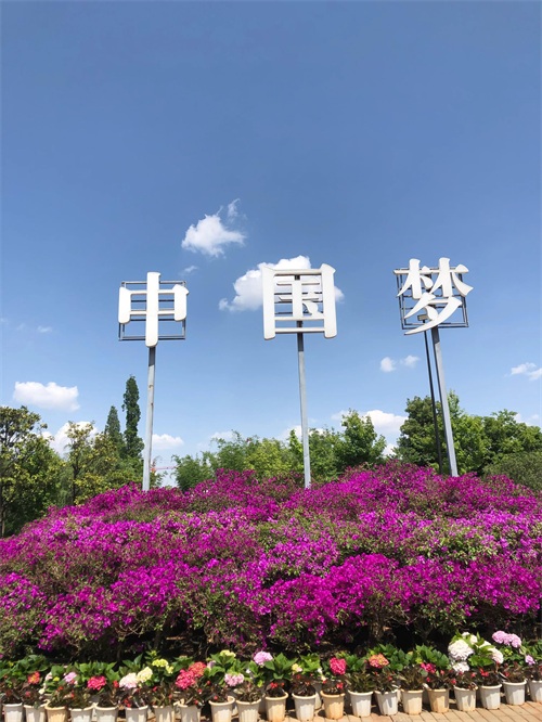 花团锦簇,蓝天白云中国梦。