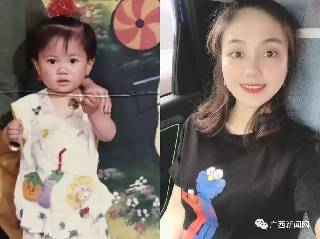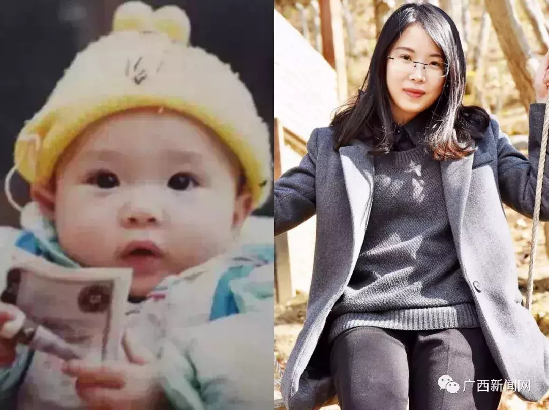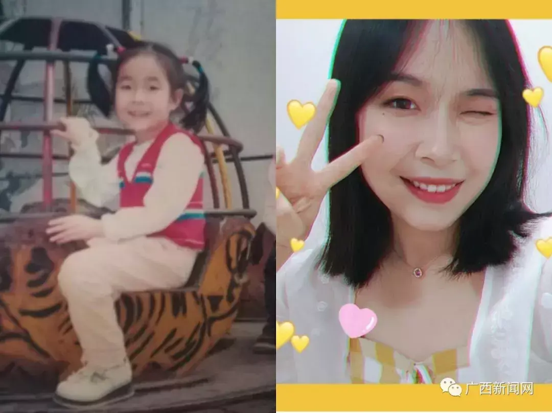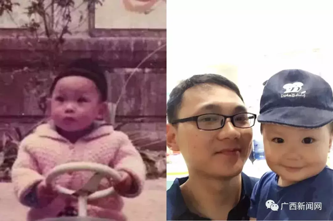 小时候的自己,长大的自己以及两岁小女儿,一家人整整齐齐。