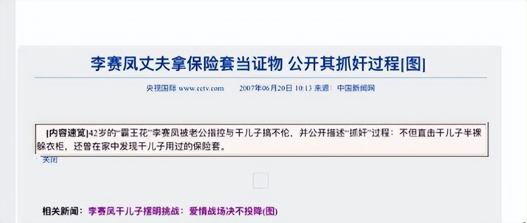 2007年,42岁的李赛凤被曝和养子有染,富豪丈夫的曝料可信么?