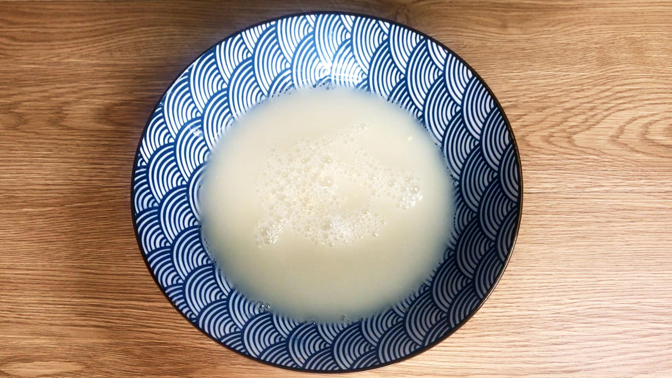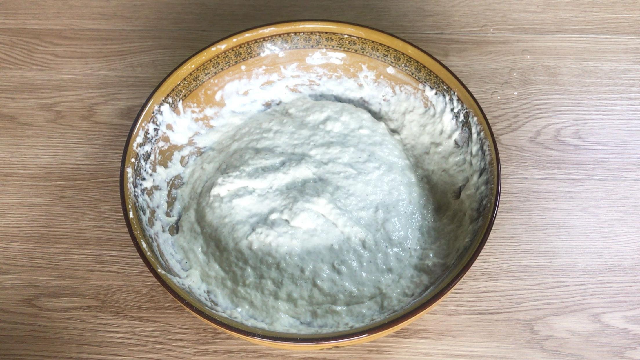 5.酵母水边倒,边用筷子搅拌,搅拌成面糊状就可以了,盖上保鲜膜醒发半小时