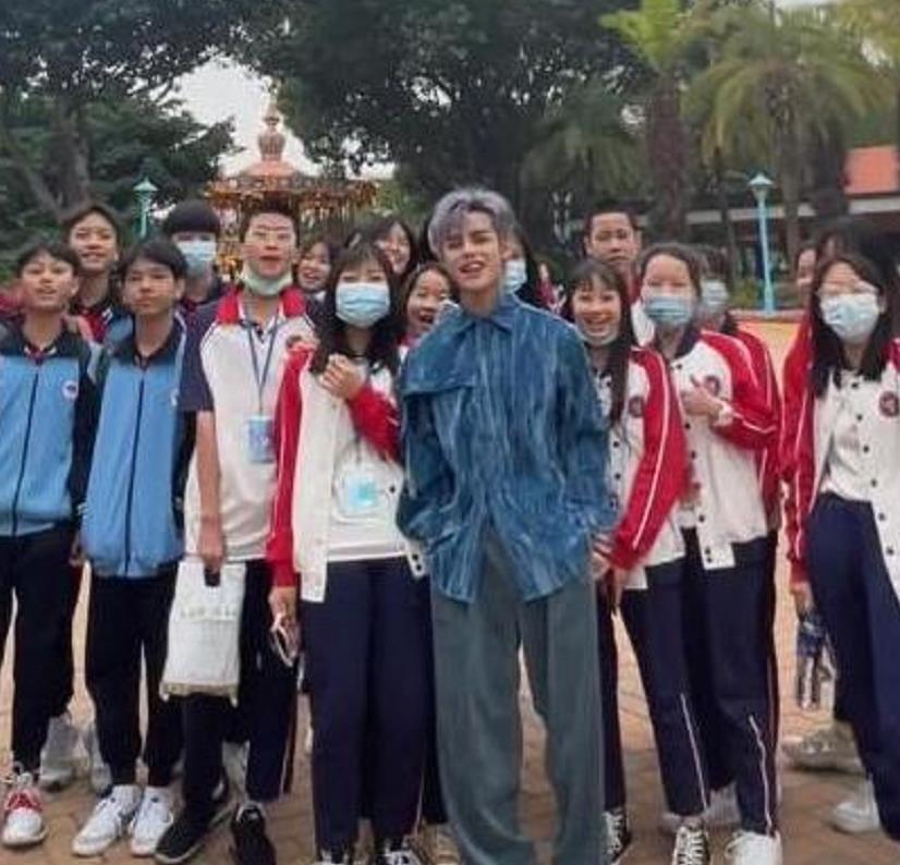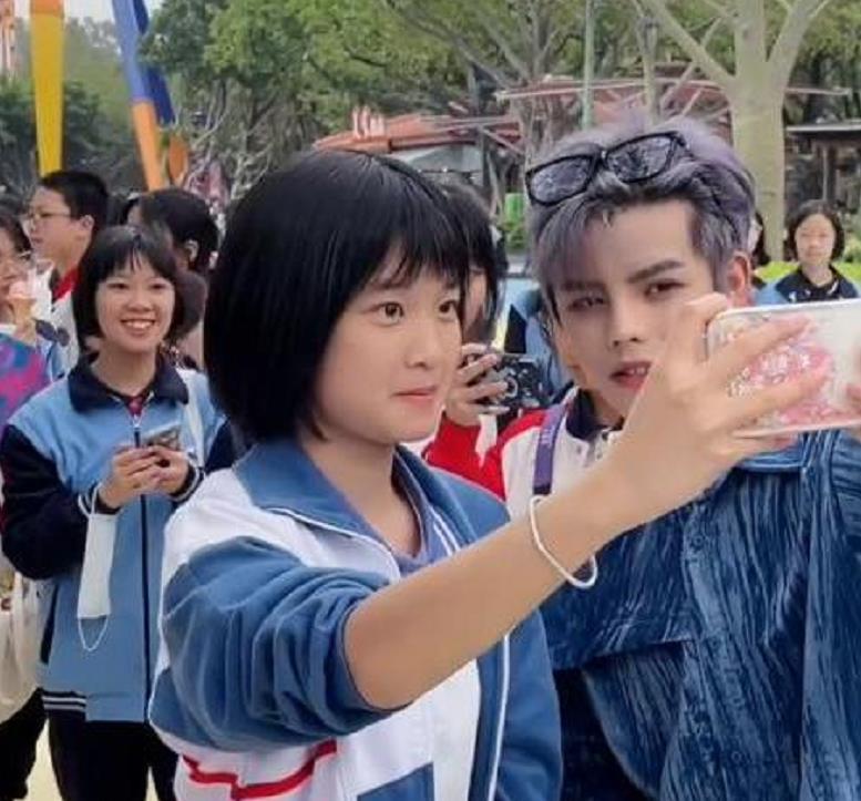 “网红总裁”殷世航外出被围观,跟小学生合照,意外暴露真实身高
