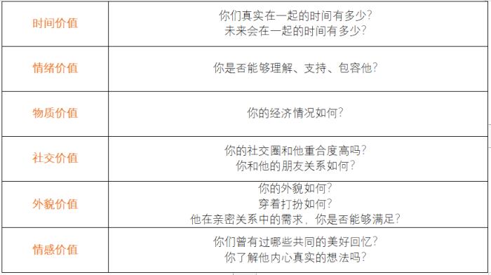 我们在亲密关系中想要获得的价值大概可以分为六种。