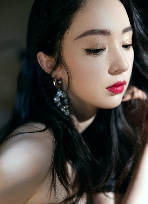 美照中的董璇脸部画着精致的妆容,皮肤细嫩光滑,丝毫看不出实际年龄,少女感满满。一头长长的大波浪则散落在肩部,使得肩膀若隐若现,充满了性感撩人的意味。加之董璇耳朵上戴着一对造型夸张的耳坠,使得董璇整体的装扮美艳气息浓厚。