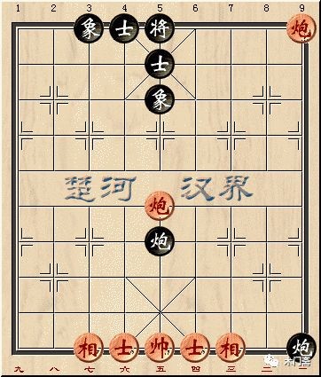上图中,红黑双方各有一个“当头炮”和“沉底炮”。其中黑方的五路炮就是“空头炮”,而红方的一路炮的功效与“空头炮”异曲同工。
