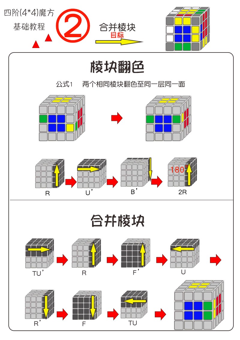 四阶魔方基础还原教程图解(厂家改良版)-四阶魔方一步一步公式